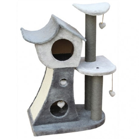 Votre chat prendra beaucoup de plaisir à jouer avec deux jouets en fourrure et équipé de 2 plateaux plus une cache pour se reposer - le plus : un griffoir.